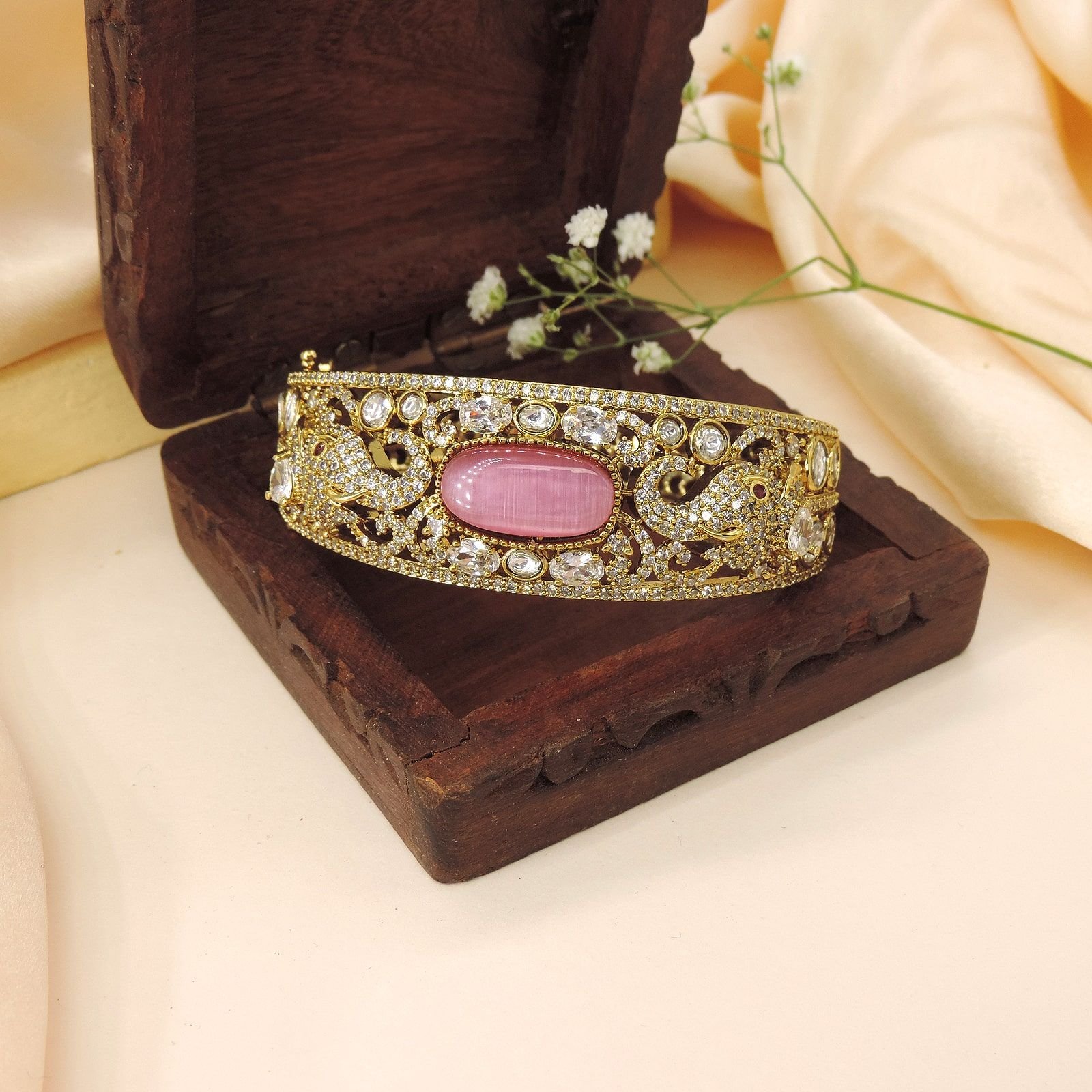 Antique Gold-Plated Pink Stone Kada Bangle